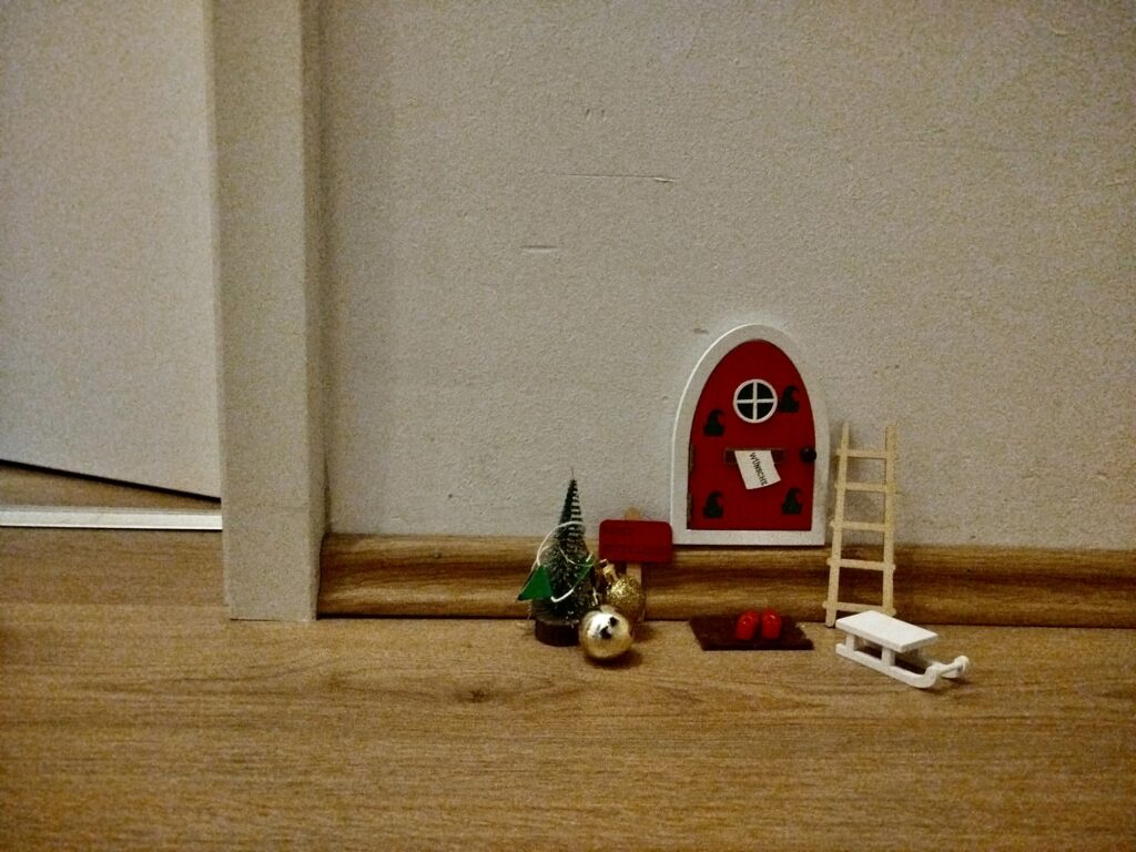 In meiner Kindheit befand sich im Bauch eines wiederbefüllbaren Pappweihnachtsmannes jeden Tag ein Schatz, der in die Größe einer Streichholzschachtel passte. Und heutzutage — zu all den täglichen Schul- und Sportvereinsweihnachtsfeiern, die sich über selbstgebackene Mitbringsel freuen– zieht zu alledem bei den Familien, die wirklich etwas auf sich halten, jetzt auch noch weit vor Weihnachten und bis ins neue Jahr hinein ein Wichtel ein! Dieser macht Streiche, hängt mit Luftballons Jacken an die Zimmerdecke, raspelt in der Nacht Kartoffeln zu Chips oder legt eine Mehlspur durchs Treppenhaus. Der Wichtel 2025 trägt einen nordischen Namen, ist frech, kreativ, unerzogen, witzig und ist vor allem Nachts besonders hochaktiv, während die Kinder schlafen (sollen). Er überbietet sich jeden Tag selbst an Kreativität. Sehen kann man ihn nie. Vermutlich schleicht er sich tagsüber heimlich aus dem Haus und fährt mit einem Taxi nach Paris. Doch in der Zwischenzeit ist seine Wohnungsausstattung überbordernd. Er besitzt natürlich eigenes kleines Spielzeug, Milchkannen, Briefkasten… Vermutlich hat er eine voll ausgestattete Wohnung hinter der Tür an der Wand, zumindest ist sein gut sortierter Vorgarten mit allerlei Equipment für Jederkind ersichtlich. Einfach nur einen schlichten Tannenzweig — damit gäbe er sich nicht zufrieden.